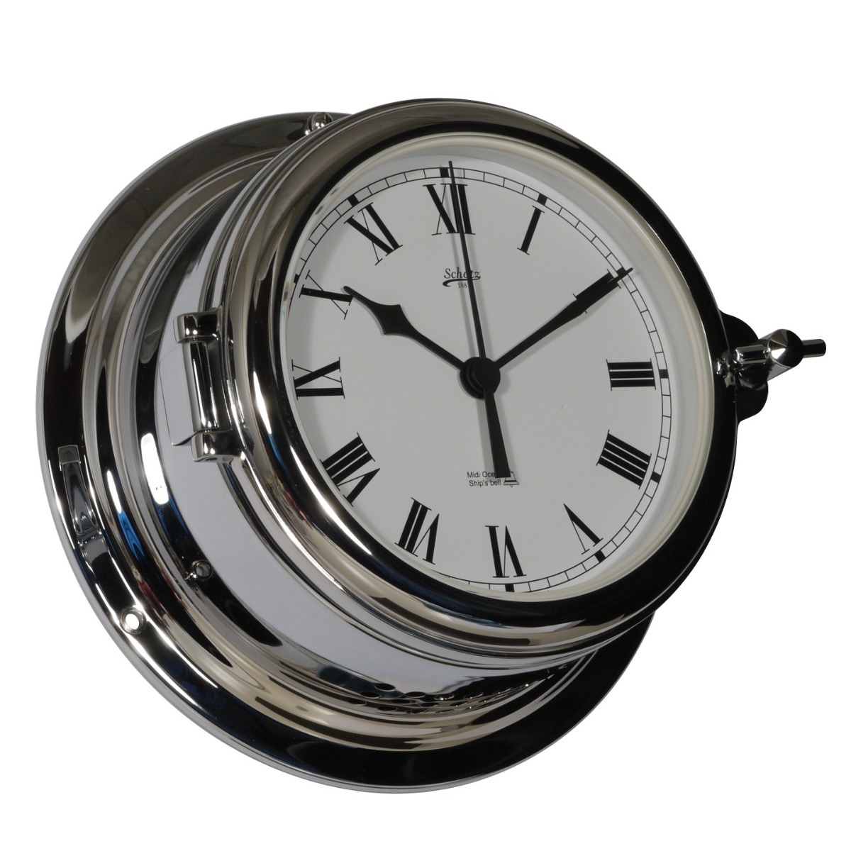 Clockwork with electro-mechanical bell striking mechanism is powered with one AA size battery (LR6).